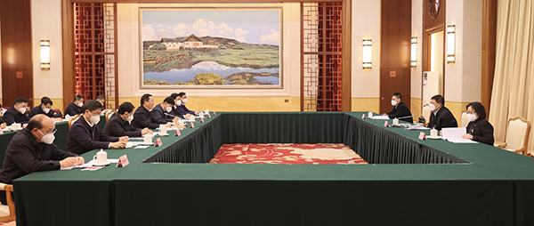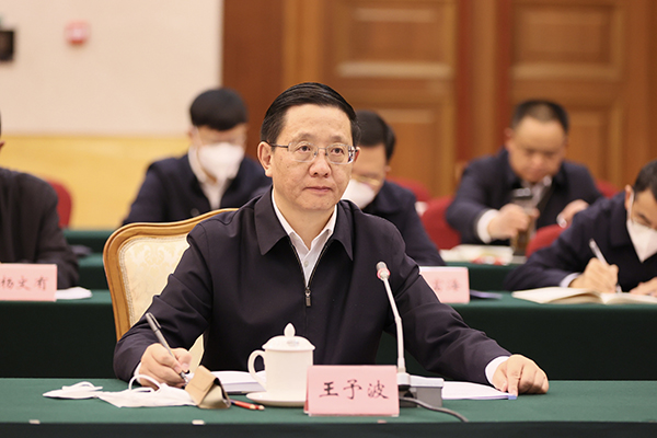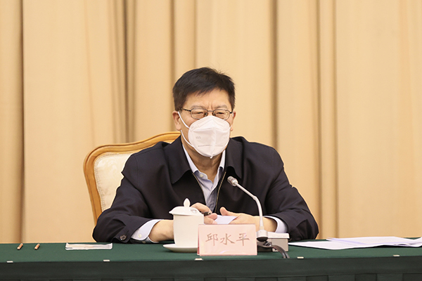 中央依法治国办第八督察组组长、全国人大环资委副主任委员、中国法学会副会长邱水平反馈督察意见。省委书记、省人大常委会主任王宁会见督察组一行,并交换了工作意见。省委副书记、省长王予波主持会议并作表态讲话。